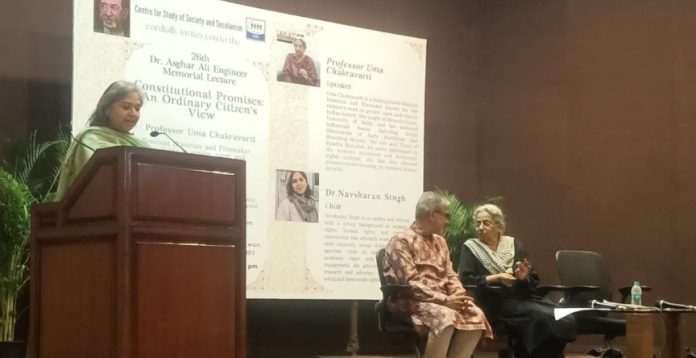New Delhi: The 26th Dr. Asghar Ali Engineer Memorial Lecture, held at Jawahar Bhawan, brought together scholars, activists, and citizens to reflect on the evolving meaning of justice and equality in India. Organized by the Centre for Study and Secularism, the event featured noted feminist historian and filmmaker Professor Uma Chakravarti, who delivered a lecture titled “Constitutional Promises: An Ordinary Citizen’s View.”