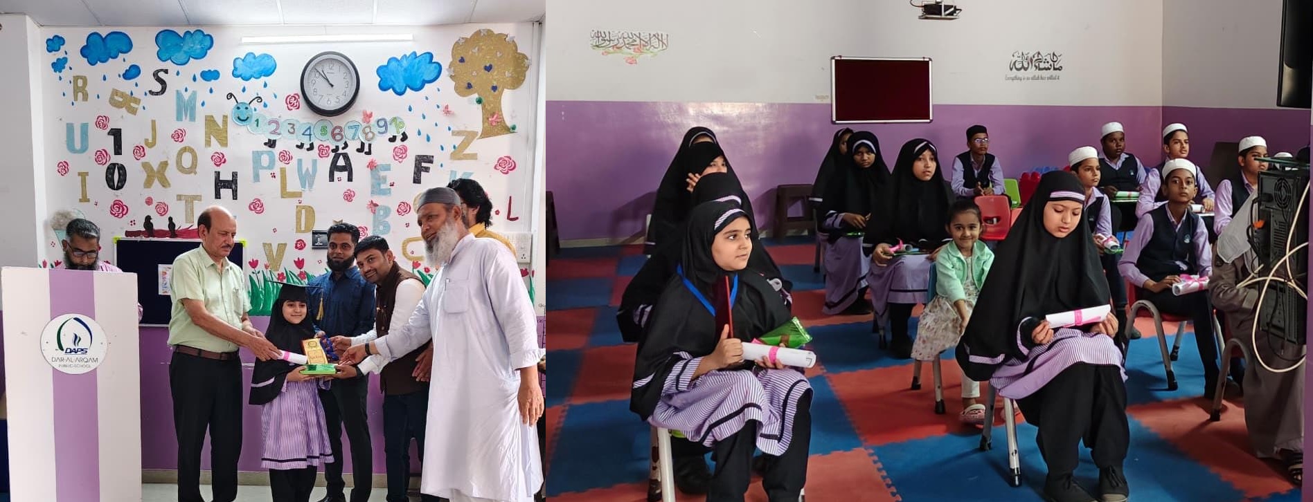 In Class 5, the first position was secured by Iqra Khan, followed by Tasmia Fatima Hashmi in second place and Ayesha Zahid Khan in third. In Class 8, the top three performers were Sabiha Farooqi, Ruzain Khanam, and Arbia. The recognition of these students highlighted the school’s commitment to academic excellence and character building.
