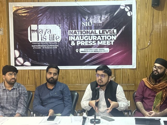 New Delhi: The Students Islamic Organisation (SIO) of India has launched a nationwide campaign titled Haya is Life: Meaning, Morality and Tranquillity, aiming to promote modesty and ethical consciousness among youth. The campaign was inaugurated at the Press Club of India and will continue until November 10, 2025.